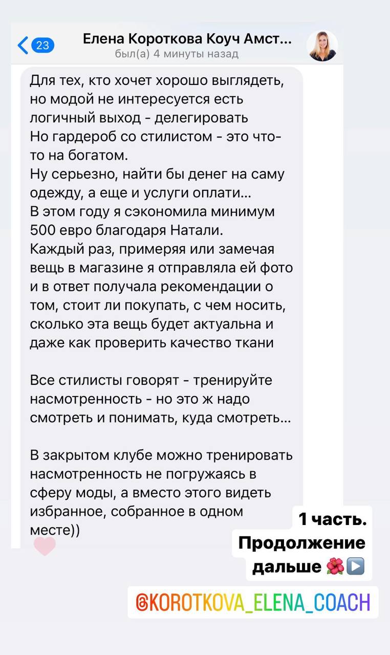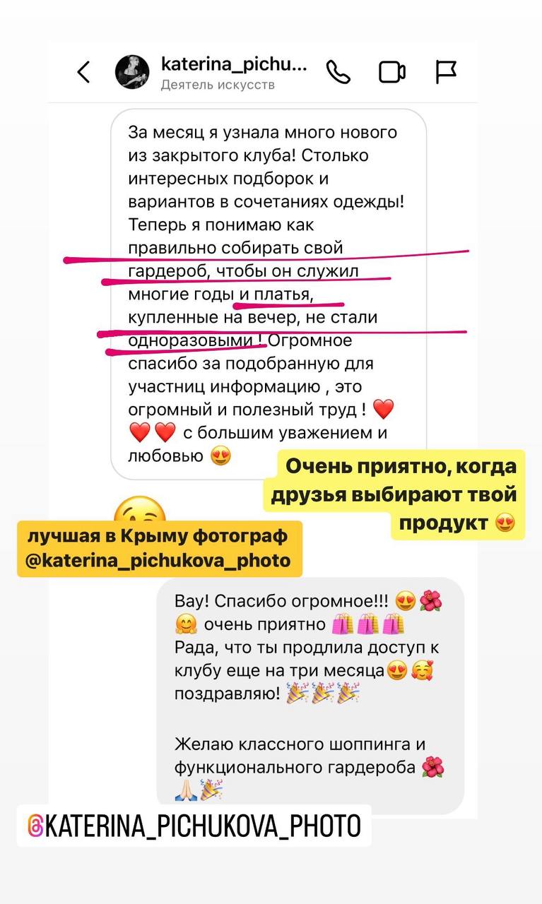 - Создала закрытый клуб о моде и стиле, в котором ежедневно выходят полезные и обучающие материалы
