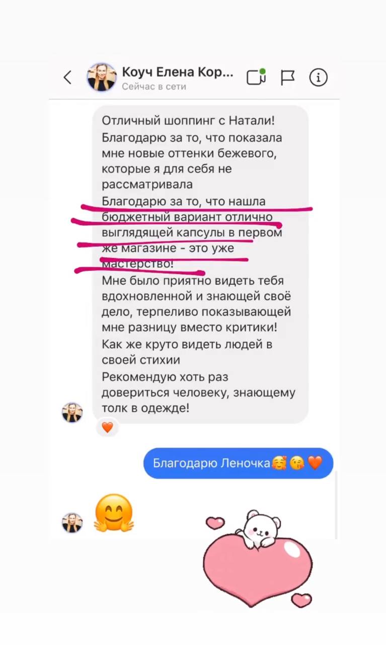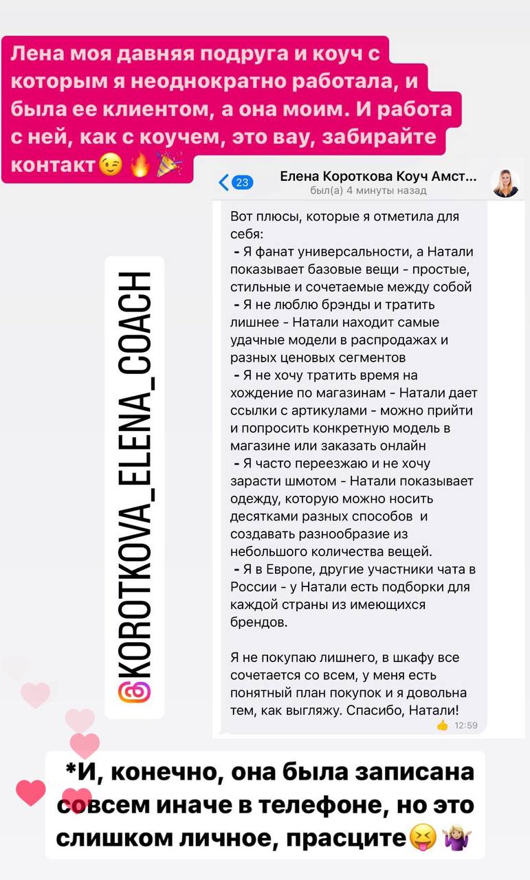 - Создала и провела курс о базовом гардеробе